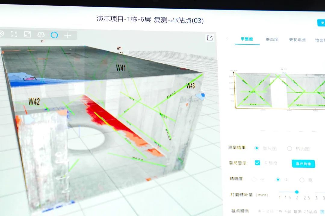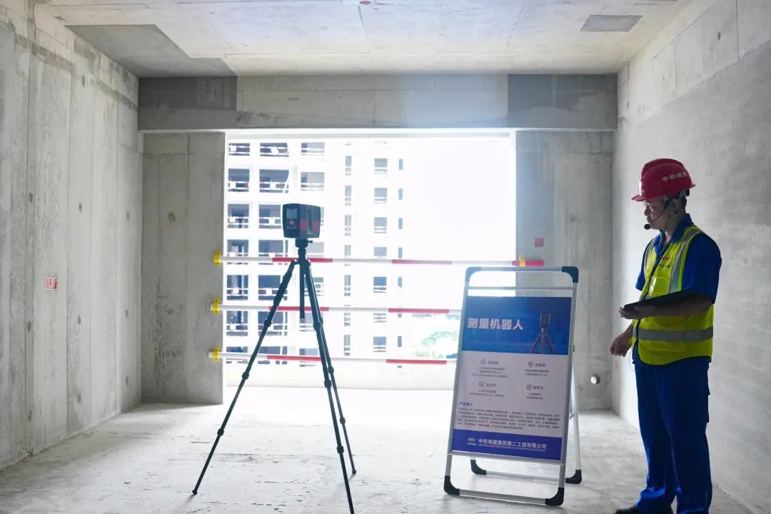 “别看它个头不大,本事可不小!”在工序样板展示区,管理人员小蒋熟练操作手中的遥控器,智能实测实量机器人、喷涂机器人在各自区域内高效分工作业,“效率是人工的10倍多,水平垂直测量、立面检测这些复杂活都不在话下。”